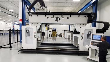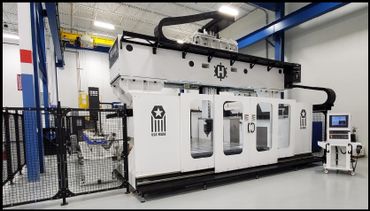 Moving Gantry for full five side machining while keeping the part stationary.